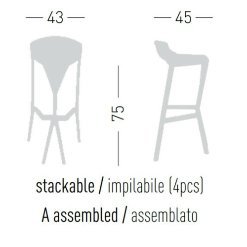 Celoplastová židle SHIVER vyrobená z kvalitního technopolymeru. Židle se vyrábí v několika barevných provedeních. Židle je díky své konstrukci vhodná i pro venkovní použití. Plastová barová židle je vhodná i do domácnosti a veřejných prostor. Barová židle SHIVER vynikne ve vašem interiéru díky originálnímu a modernímu designu.