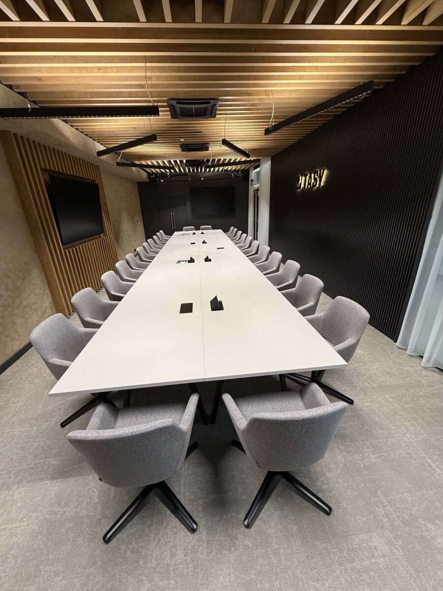 Pro společnost TASY CZ jsme realizovali dodávku sezení do konferenčních prostor, kde byly použity konferenční křesílka Kloe. Řešení bylo navrženo s důrazem na pohodlí při dlouhodobém sezení, funkčnost a čistý, moderní design. Pohodlná křesílka KLOE svým provedením podtrhují profesionální charakter prostoru a zároveň zajišťují vysoký uživatelský komfort při každodenním využití i formálních jednáních. Realizace 2025.