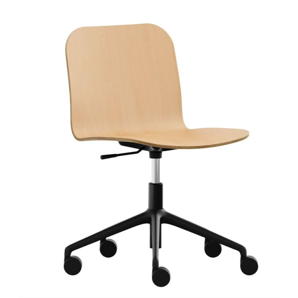 Víceúčelová židle moderního designu. Subtilní tenká konstrukce zaručí nevšední komfort sezení. Praktický tvar a nízká hmotnost ji předurčují do velkých prostor, kde se s ní často manipuluje. Nyní dostupná s dřevěnou bukovou skořepinou. Tato elegantní židle na černém pětiramenném plastovém kříži zvládne mnoho úkolů, a to od konferenčních místností až po útulný home office.