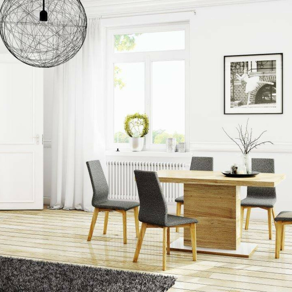 Sedák a opěrák je čalouněný světle šedou potahovou látkou Malmo New 83. Nohy židle jsou dubové - odstín dub bělený.