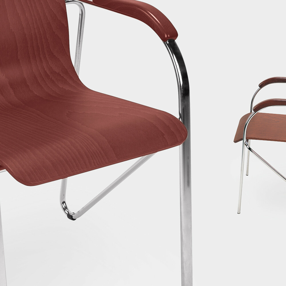 Kovová jídelní židle SAMBA wood je vyrobena v kombinaci dřeva a kovu. Tato židle má široký sedák a opěrák v provedení překližka. Křesíko má područky, které jsou opatřeny dřevěnými krytkami.