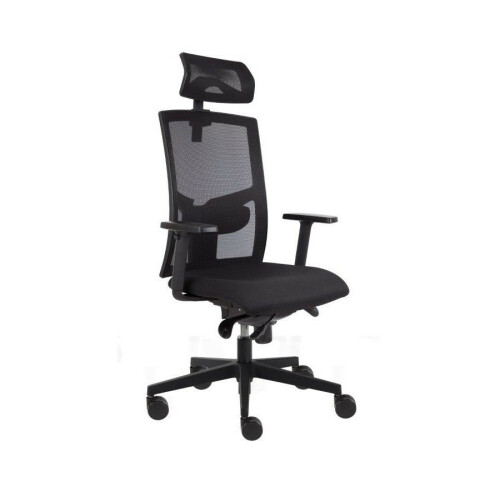 Kancelářská židle GAME Šéf se vyznačuje síťovaným opěrákem, který je výškově stavitelný a je opatřen mechanickým zámkem a výškově stavitelnou bederní opěrkou. Barva síťoviny opěráku je černá. Sedák židle je čalouněný potahovou látkou dle Vašeho výběru. Otočná výškově stavitelná židle je posazena na pětiramenném kříži s kolečky. V základním vybavení je kříž nylonový, za příplatek můžete vybrat i kovový kříž. Produkt je vybaven synchronním mechanismem nebo synchronním mechanismem s posuvem sedáku. Doplňkem židle jsou výškově stavitelné područky a síťovaný stavitelný podhlavník.