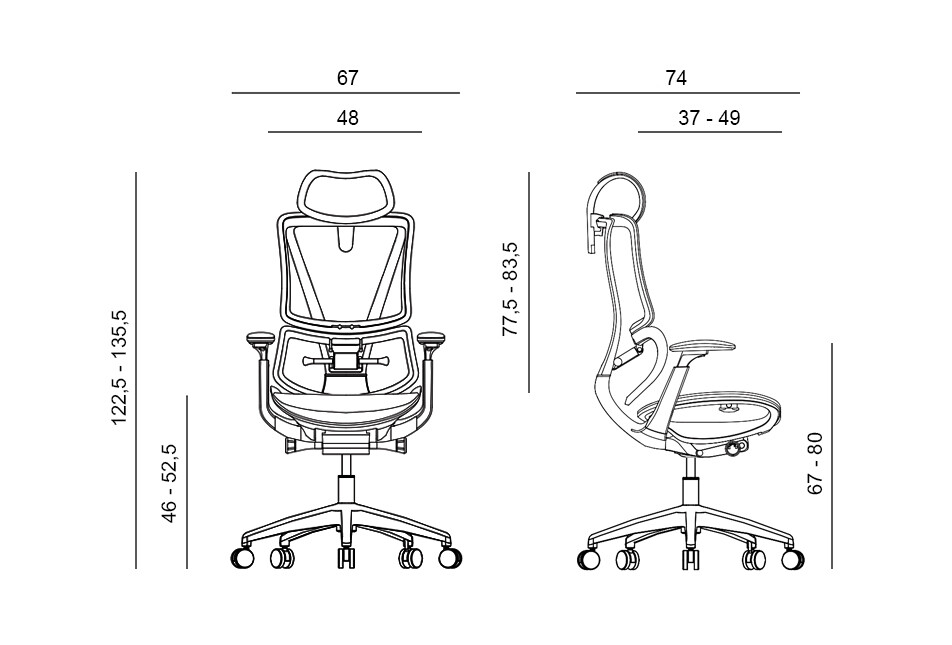 - 4D výškově nastavitelné područky s měkkou dotykovou plochou nastavitelnou podélně, úhlově i do šířky a naklápějící se společně s opěrákem