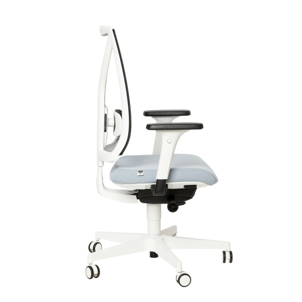 Elegantní bílé plasty v kombinaci se síťovaným opěrákem Vás zaujmou jako první u kancelářské židle LEAF.Výškově nastavitelný síťovaný opěrák je flexibilní a pružný a snadno se přizpůsobí zádům uživatele. Volitelná bederní opěrka hloubkově nastavitelná předchází bolestem zad. Sedák je výškově nastavitelný čalouněný. Pro vyšší postavy doporučujeme posuv sedáku. Doplněním židle o opěrku hlavy zajistíte úlevu krčním svalům. V základní verzi dodáváme židli bez područek, s bílými plastovými částmi a s bílým nylonovým křížem. Výškově nastavitelná kancelářská židle vhodná pro delší sezení. Síťovaný opěrák zaručí uživateli příjemné posezení. Židle má kvalitní synchronní mechaniku SYS s bočním nastavením tuhosti opěradla. Zajímavostí je, že židle je inspirovaná přírodou a opěrák připomíná list.