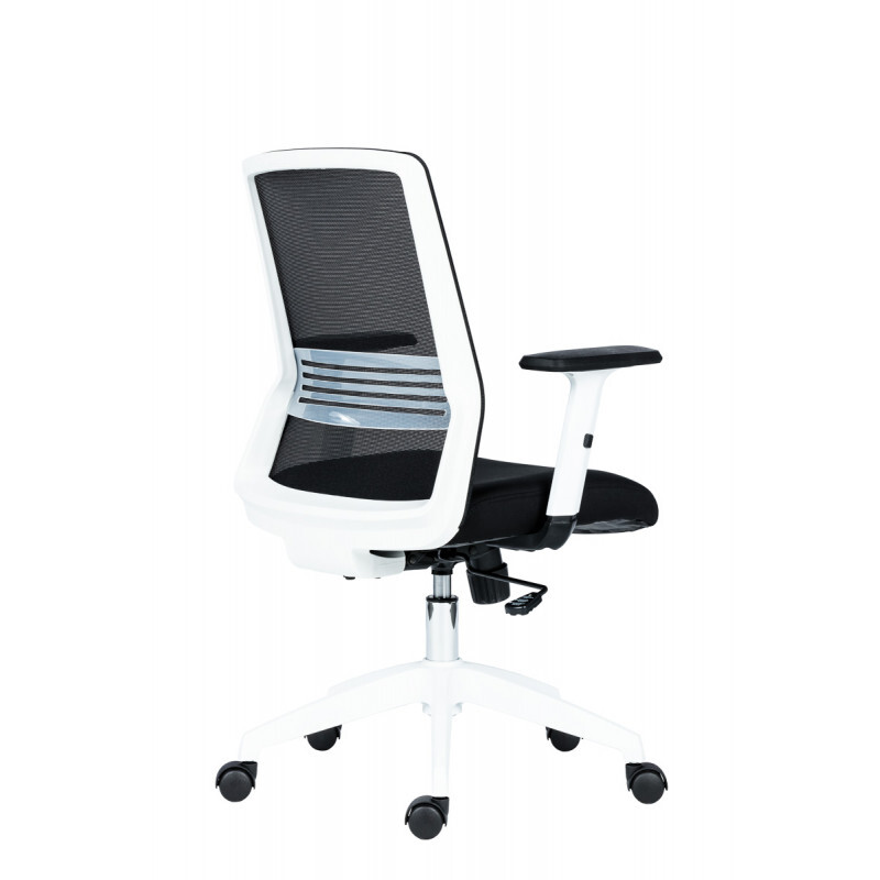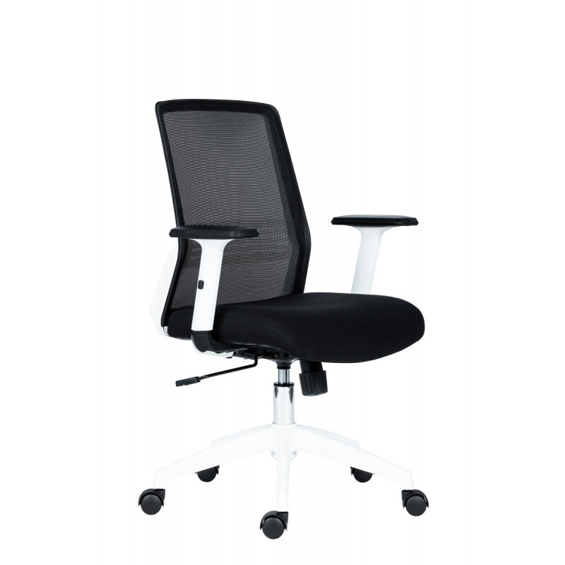 Kancelářská židle NOVELLO WHITE - GREY s čalouněným sedákem v barvě černé a síťovaným opěrákem v černém provedením. Designové provedení kostry je v barvě bílé. Součástí jsou výškově stavitelné područky s měkkou dotykovou plochou pro pohodlné opření loktů. Židle je výškově stavitelná pomocí plynového pístu a má pětiramenný nylonový kříž. Pohodlné sezení zaručuje výškově stavitelná bederní opěrka. Mechanismus židle je houpací s možností aretace v základní poloze a nastavením síly protiváhy. Tento produkt se hodí do lékařského prostředí, ale i do studovny, či pracovny.