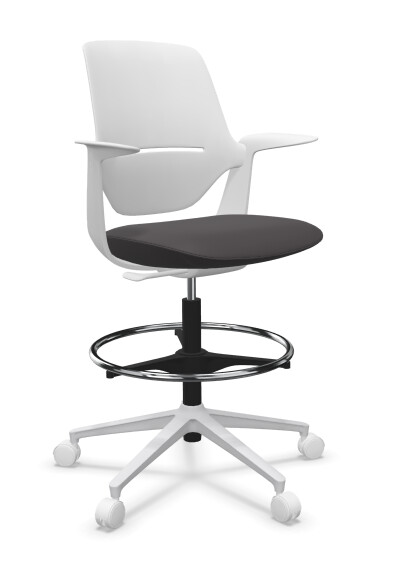 Vysoká kanceářská židle Trillo určená pro vyšší sezení. Součástí je aretační kruh pro pohodlnější sezení. Otočná židle má samonastavitelnou synchronní mechaniku SELF s možností blokace ve dvou polohách, která se přizpůsobuje hmotnosti uživatele. Opěrák je plastový, vyroben z polyamidu protkávaného skelnými vlákny. Sedák je tvořen plastovým rámem opěněným studenou polyuretanovou pěnou čalouněný v látce nebo kožence dle výběru. Výškově nastavitelná židle má pevné plastové područky. Židle má všechny plastové komponenty světle šedé (RAL7047). Pětiramenný kříž je plastový ve světle šedé barvě, kolečka i pístu jsou v černém provedení. Zvolit si můžete tvrdá nebo měkká kolečka - kolečka jsou u tohoto modelu vždy doplněná brzdou, která je aktivní, když na židli není zátěž. V případě zájmu lze kolečka nahradit černými teflonovými kluzáky s univerzálním využitím.
