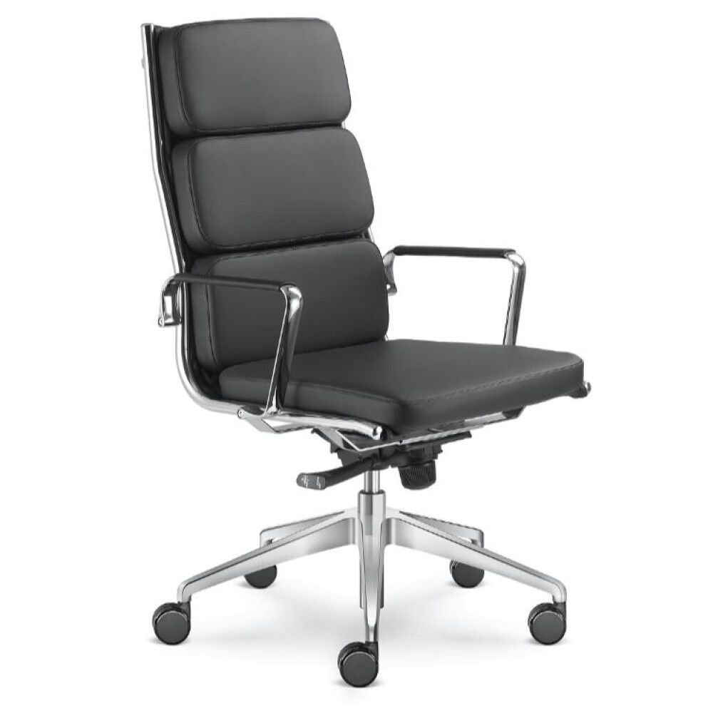 Otočné kancelářské křeslo FLY 700 je charakteristické masivním polštářovým čalouněním na vysokém opěráku a sedáku. Kostru tvoří 5-ramenný kříž z leštěného hliníku, v základní ceně s kolečky na koberec nebo tvrdé podlahy o průměru 60 mm. Hliníkové područky jsou pochromované a je možné je za příplatek doplnit koženými návleky v černé barvě (v případě požadavku jiné barvy návleků je nutné uvést do poznámky v objednávce číslo zvoleného koženého potahu). Rám sedáku i opěráku je v provedení chrom. Křeslo má houpací mechanismus s nastavením tuhosti odporu opěráku pod sedákem a s aretací v pěti polohách.K nastavení výšky sedáku slouží plynový píst. Čalouněno v látce nebo v kůži. V nabídce najdete široký výběr barev a materiálů.