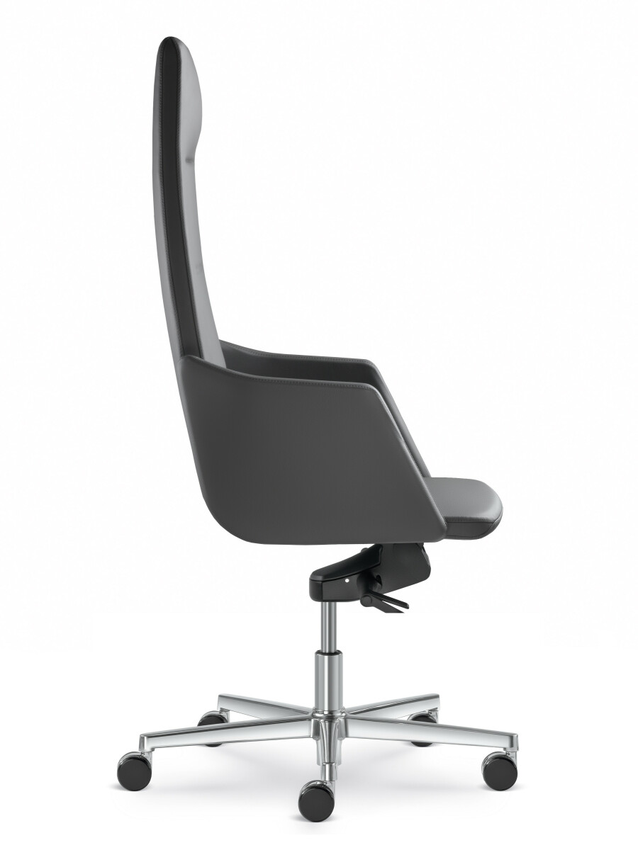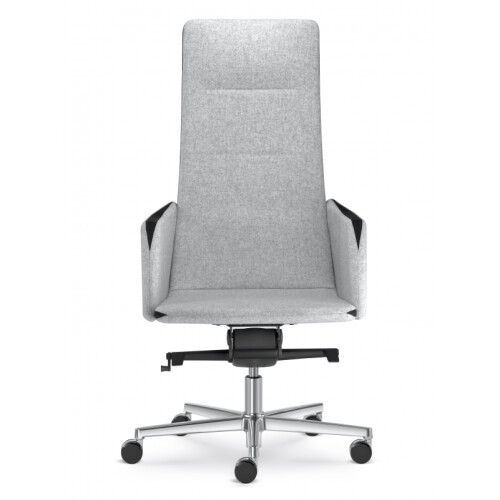 Celočalouněné křeslo HARMONY 830-H s vysokým opěrákem. Křeslo má houpací mechaniku H. Kříž je vyrobený z leštěného hliníku. Područky křesla jsou plné celočalouněné. Křeslo je vytvořeno na základech symbiózy nadčasového designu, komfortu, ergonomie a vysoké úrovně provedení. Na židli je postranní kožený designový pásek, jehož barvu lze zvolit. Mechanika H - zajišťuje komfort a správné sezení uživatele. Mechanismus lze nastavit dle váhy uživatele, lze nastavit plovoucí pohyb skořepiny nebo zablokování sklonu skořepiny ve zvolené pozici. Kolečka lze zvolit tvrdá (na koberec či lino), pogumavané ( na tvrdé podlahy) nebo univerzální s chromovým spojením mezi kolečky.