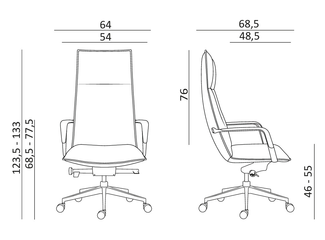 Područky z litého hliníku s čalouněnou plochou, nastavení výšky plynovým pístem, moderní báze (nylonová nebo hliníková) s kolečky Ø 60 mm, nosnost 150 kg, 60měsíční záruka a český výrobek činí toto křeslo ideální volbu pro kancelář i domácí práci.