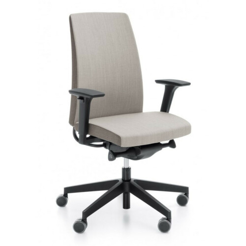 Kancelářské křeslo MOTTO je čalouněné potahovou látkou, kterou si můžete zvolit z naší široké nabídky. Křeslo lze čalounit jednobarevné nebo v kombinaci dvou barev stejné látky. Pokud budete mít o kombinaci barev zájem, je třeba specifikovat barevnou kombinaci do poznámky objednávky. Křeslo je otočné. Křeslo je vybaveno synchronním mechanismem a může být doplněným o posuv a náklon sedáku. Opěrák je celočalouněný a v horní části je elegantně zúžen. Model může být s područkami nebo bez područek a lze ho za příplatek doplnit o hlavovou opěrku a hloubkově nastavitelnou bederní podpěru. Konektor opěradla se sedadlem je vždy černý, bez ohledu na barvu kříže.