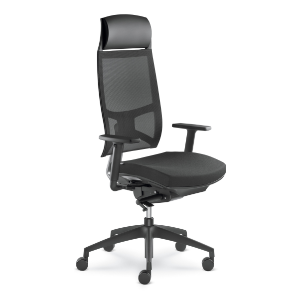 STORM 550-SYS je komfortní kancelářské křeslo s vysokým opěrákem a s nastavitelnou hlavovou opěrkou. Opěrák židle je černý nylonový s k sedáku připevněn držákem v barvě N2 nástřik hliník nebo N6 leštěný hliník. Křeslo je vybaveno synchroní mechanikou s pětinásobnou blokací a posuvem sedáku. Volitelné za příplatek jsou područky, pětiramenný kříž či kolečka. Dále je za příplatek možné si pořídit výškově nastavitelnou bederní opěrku. Křeslo je ideální do moderně laděných kanceláří a jednacích místností, je velmi oblíbené a komfortní.