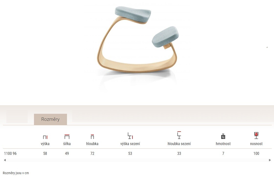Upozornění: Hloubkou sezení na kartě rozměry rozumíme hloubku čalouněného dílu sedáku.