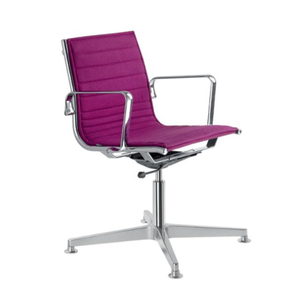 Otočné křeslo FLY 713 s nízkým opěrákem je výškově stavitelné, bez možnosti houpání. Kostru tvoří 4-ramenný kříž z leštěného hliníku s kluzáky - kluzáky je možné nahradit univerzálními černými kolečky o průměru 37 mm nebo za příplatek doplnit filcovým zakončením. Židle je elegantního designu s ocelovým rámem sedáku a opěráku v provedení chrom. Sedák a opěrák tvoří jeden korpus, který je polstrován vodorovně prošívaným čalouněním. Hliníkové područky jsou pochromované a je možné je za příplatek doplnit koženými návleky v černé barvě (v případě požadavku jiné barvy návleků je nutné uvést do poznámky v objednávce číslo zvoleného koženého potahu). Plynový píst umožňuje nastavení výšky sedáku (za příplatek lze zvolit píst s pamětí pozice). Čalouněno v látce nebo v kůži.