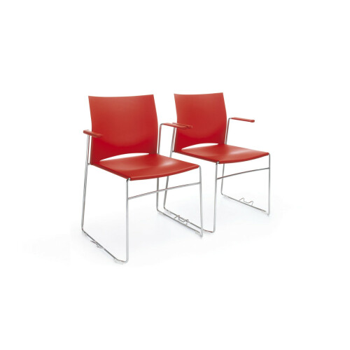 Plastová židle ARIZ 550V s područkami. U židle máte na výběr z několika barev plastů. Kostra židle je kovová v mnoha barevných provedeních, doplněna kluzáky na měkké či tvrdé povrchy. Područky jsou v barvě plastu židle. Židle je určena především do konferenčních místností za účelem provádení školení, prezentací, firemních akcí a podobně, ale je stejně tak vhodná pro využití v soukromých ineriérech. Vhodným doplňkem může být úložný košík. Úložný košík je k dispozici pouze ve variantě chrom.