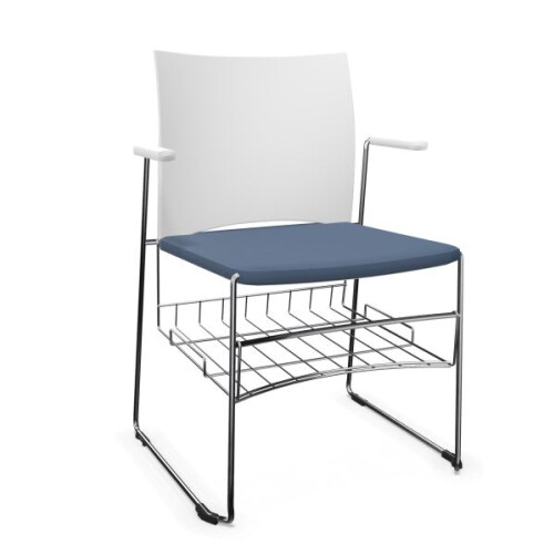 Plastová židle ARIZ 560V s područkami. Židle má čalouněný sedák a plastový opěrák v mnoha provedeních. Kovová kostra židle je k dostání v široké škále barev, doplněna kluzáky na měkké či tvrdé povrchy. Židle je určena především do konferenčních místností za účelem provádení školení, prezentací, firemních akcí a podobně, ale je stejně tak vhodná pro využití v soukromých ineriérech. Vhodným doplňkem může být úložný košík. Košík je k dispozici pouze ve variantě chrom.
