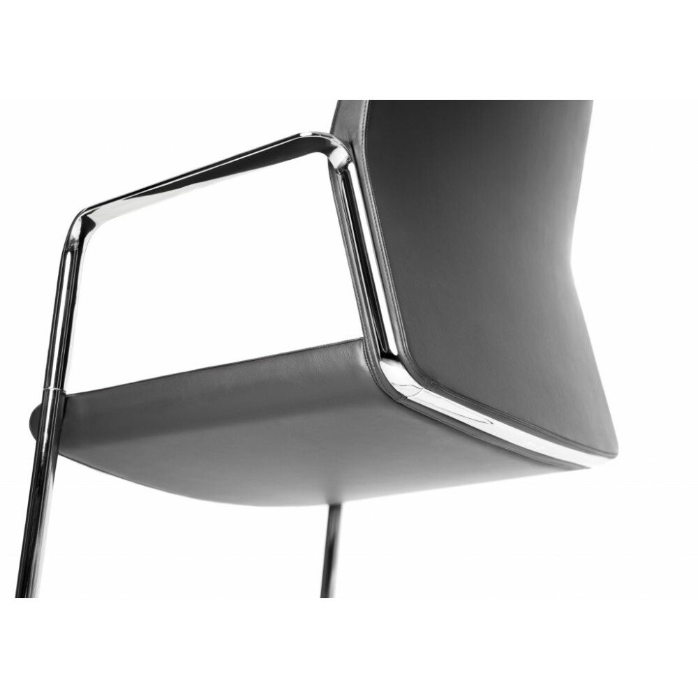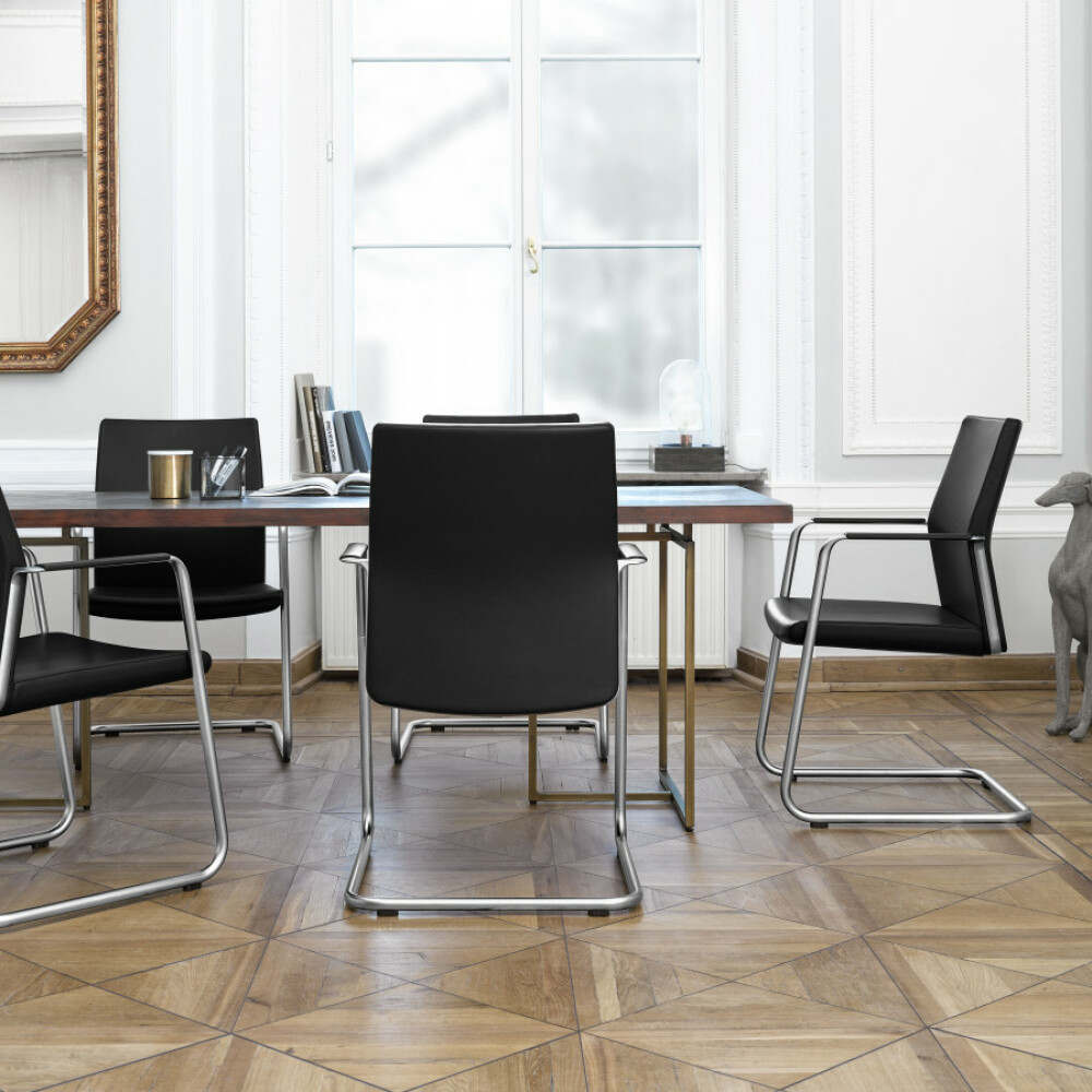 Elegantní konferenční a jednací židle MyTurn 21VN pro pohodlné sezení je ideální především do kanceláří. Židle s područkami působí luxusně a osvěží každý interiér. Pérová chromová konstrukce podpoří elegantní vzhled této celočalouněné židle. Sedák i vysoký opěrák jsou čalouněný buď v látce, kožence nebo kůži. Kovové područky mohou být opatřeny plastovou krytkou nebo čalouněné - u varianty v kůži jsou područky ve stejné barvě kůže jako zvolené čalounění židle. Pokud je židle čalouněná látkou nebo koženkou Softline, je područka čalouněná v černé kůži. Židle není stohovatelná. Za příplatek lze židli objednat s možností prošívání sedáku a opěráku.