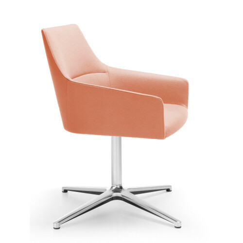 Křesílko CHIC 20F je čalouněné v látce nebo v kůži v barvě dle výběru. Křesílko je otočné, za příplatek lze zvolit píst s pamětí pozice. Kovová podnož je vyhotovená v provedení leštěný hliník.