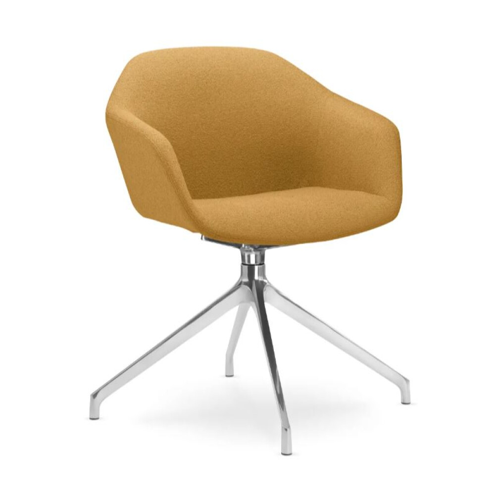Model Riva RI-02,F70-N6 je celočalouněné otočné křesílko na čtyřramenném kovovém kříži v provedení leštěný hliník. Kříž je ukončen plastovými nebo filcovými kluzáky.