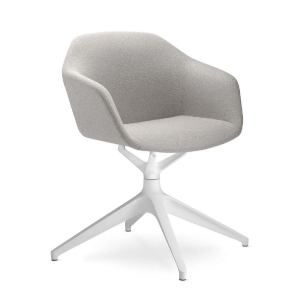 Model Riva RI-02,F01 je celočalouněné otočné křesílko na čtyřramenném nylonovém kříži v černé či bílé barvě Kříž je ukončený plastovými nebo filcovými kluzáky.