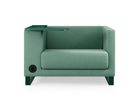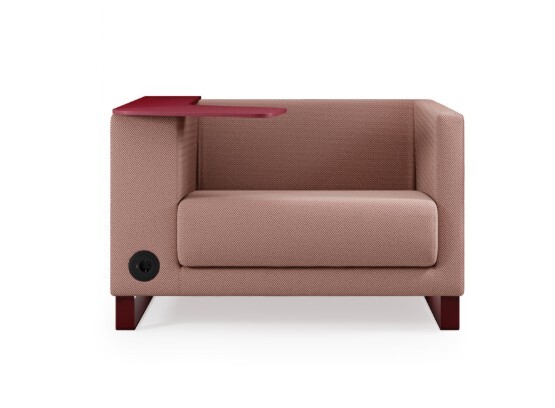 Křeslo je dostupné v široké škále potahových materiálů a barev dle vzorníku výrobce. Stabilní konstrukce zajišťuje dlouhou životnost i při intenzivním používání. Integrovaný stolek je navržen tak, aby přirozeně doplňoval tvar křesla a nenarušoval jeho estetiku.