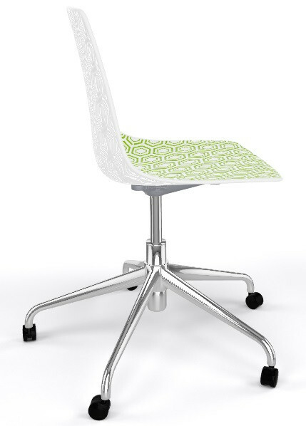 Moderní plastová židle ALHAMBRA 5R s barevným vzorem vyrobená z kvalitního technopolymeru. Skořepina je posazena na plynovém pístu a pětiramenném kříži z leštěného hliníku s kolečky. Židle je otočná a výškově stavitelná. Je krásným i praktickým doplňkem do domácnosti, dětských i studentských pokojů, kanceláří i ale i do veřejných prostor. Informace ke dvoubarevnému provedení: horní část čtverečku barevné varianty je barva skořepiny (zezadu), spodní část udává barvu šestiúhelníků.