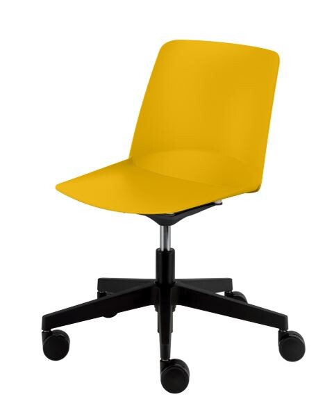 Kolekce EMMA nabízí několik variant podnoží, včetně otočného kříže. Nabídku kolekce doplňují také židle se sklopným stolkem či lavice.