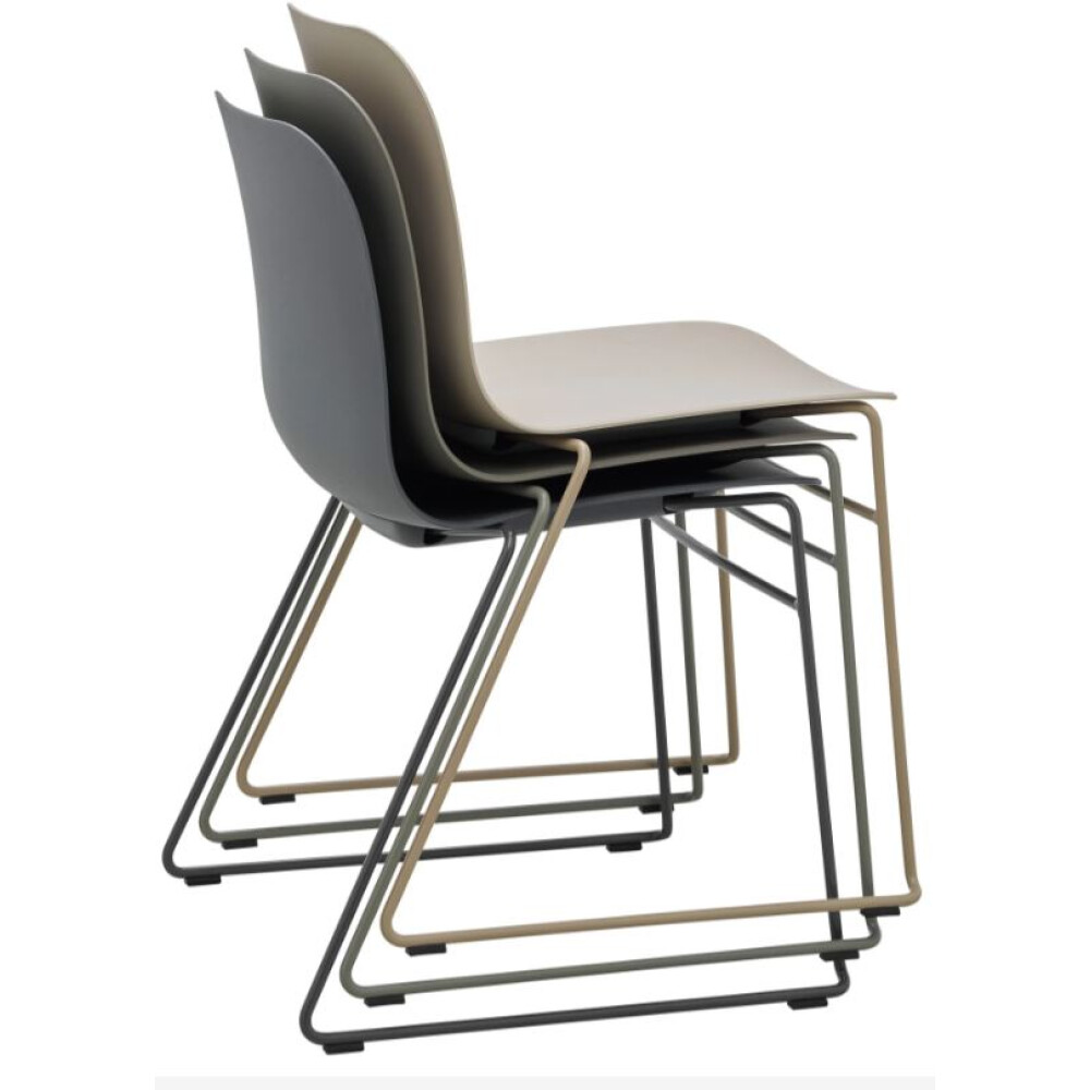 Velkou výhodou židle Lambda s ližinovou konstrukcí je stohovatelnost, a to až po 8 kusech.