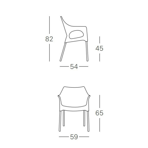 OLA - jedná se o plastové pohodlné křesílko. Nohy jsou vyrobeny z anodizovaného hliníku, sedák a opěrák jsou z polypropylenu. Židle je stohovatelná, vhodná pro venkovní i vnitřní použití. Novinkou tohoto produktu je možnost zvolit si i nehořlavé provedení a to v několika barvách plastů. Výhodou je omyvatelnost a odolnost praktického plastu. Židle má zátěžový certifikát CATAS.