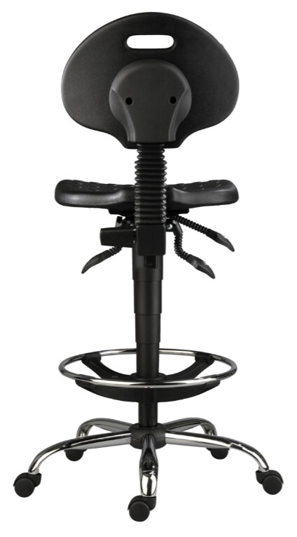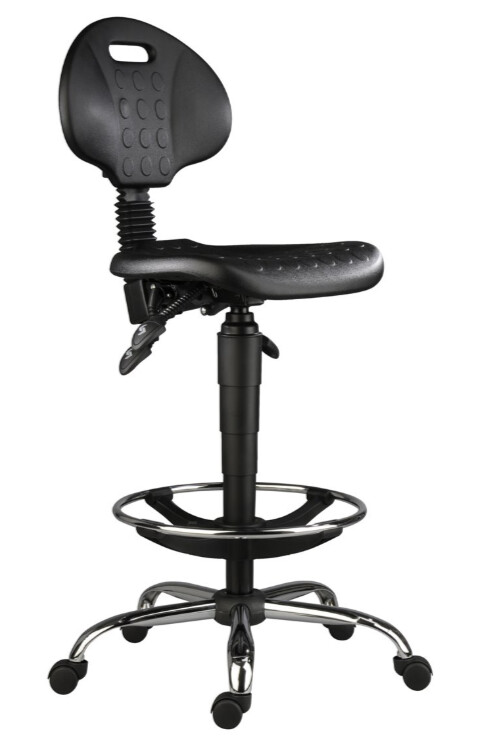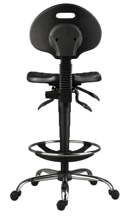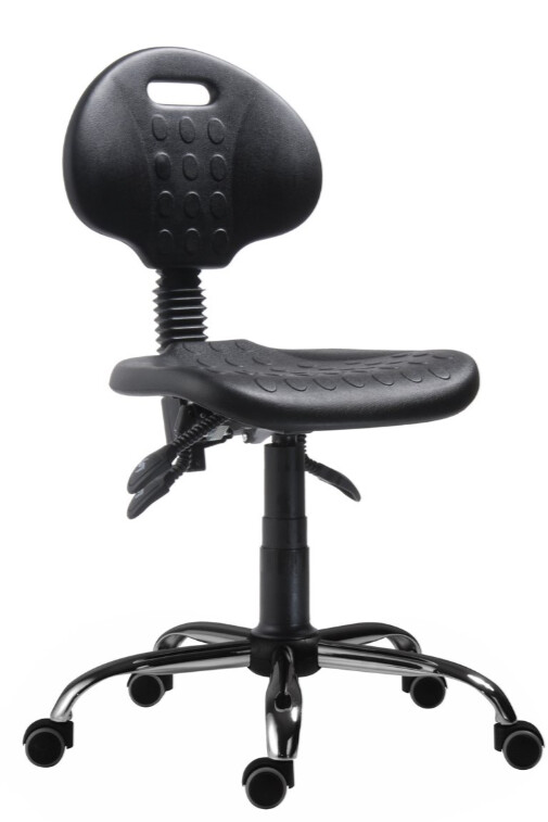 Polyuretanová dílenská židle 1290 PU ASYN je ideální pro náročné pracovní prostředí dílny nebo laboratoře. Vybavena je asynchronním mechanismem pro ergonomické naklápění a nastavitelnou výškou opěráku, což zajišťuje pohodlné sezení při dlouhodobé práci. Plynový píst umožňuje snadné výškové nastavení sedáku podle potřeb uživatele.