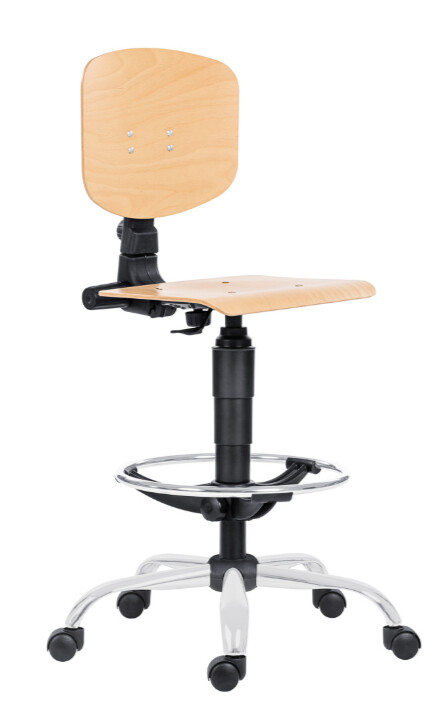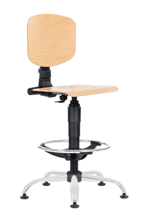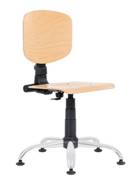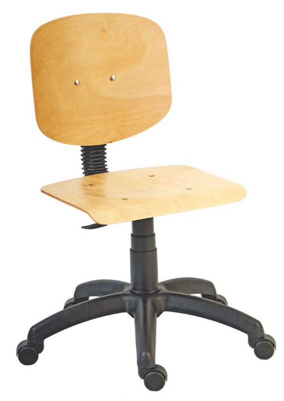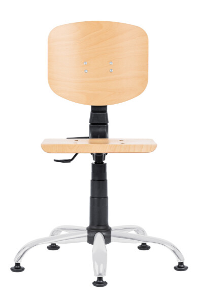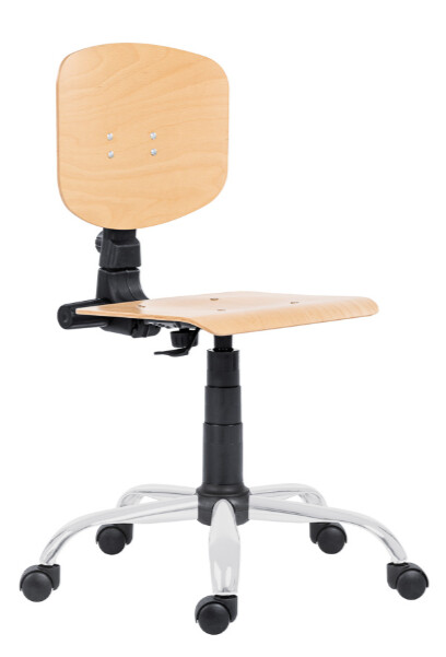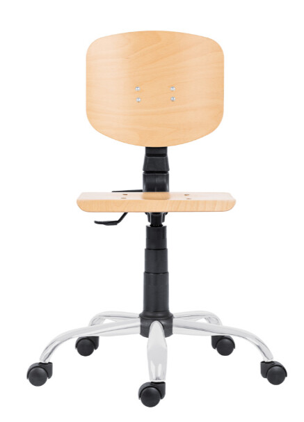 Buková překližka: Odolný sedák i opěradlo z kvalitního bukového dřeva, ideální pro dlouhodobé sezení v dílně nebo laboratoři.