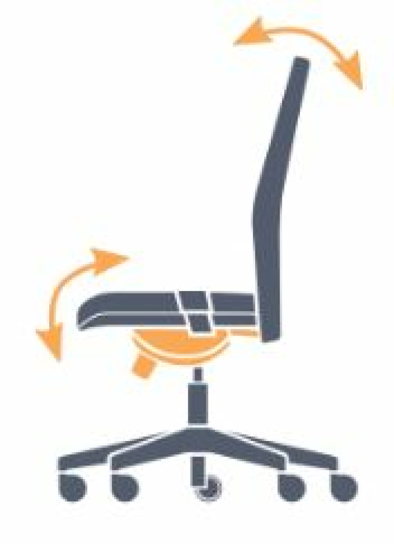 mechanika asynchronní - nastavení úhlu sedáku, nezávislé naklápění sedáku a opěráku pomocí páčky pod sedákem, zajistění opěráku v jakékoliv poloze v rozmezí 20 stupňů