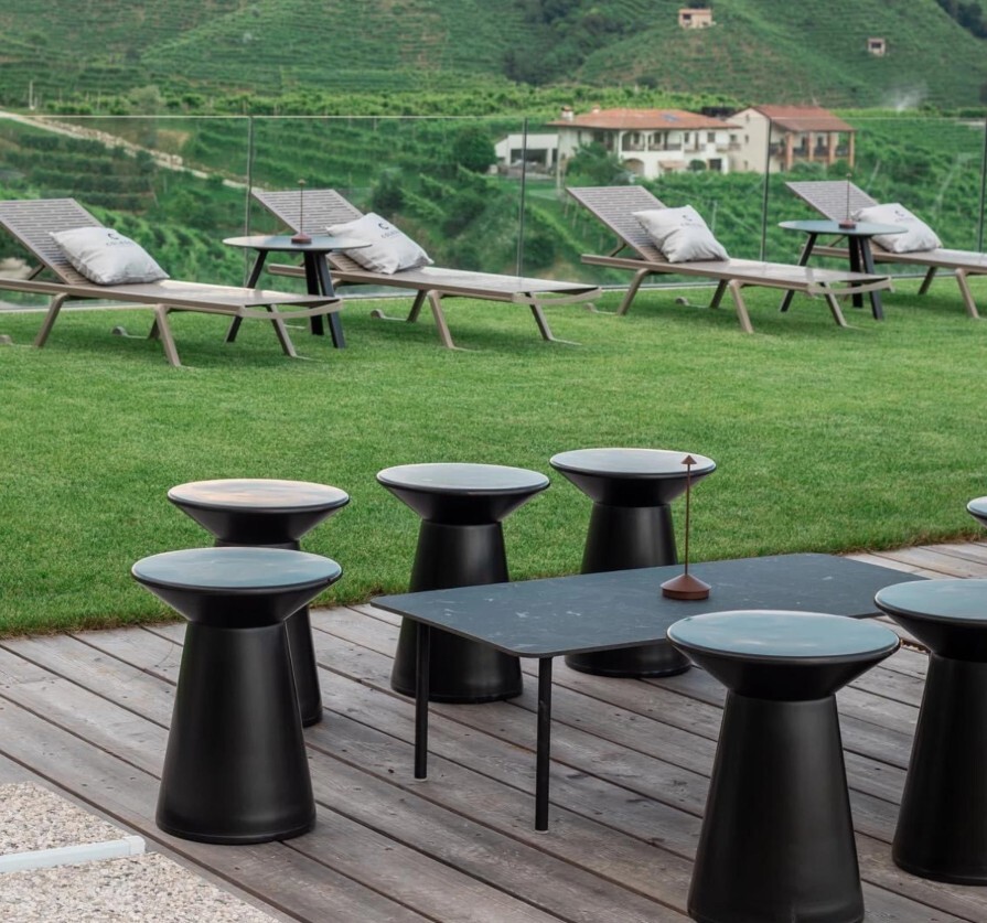 ROLLER plastová stolička vyrobená z technopolymeru. Stolička je designově velmi zajímavá a je vhodná do exteriéru - povrch je hladký, snadno se čistí a stolička je vhodná k intenzivnímu použití. Výška sedáku je 50 cm, průměr sedáku 40 cm, průměr základny 30 cm.