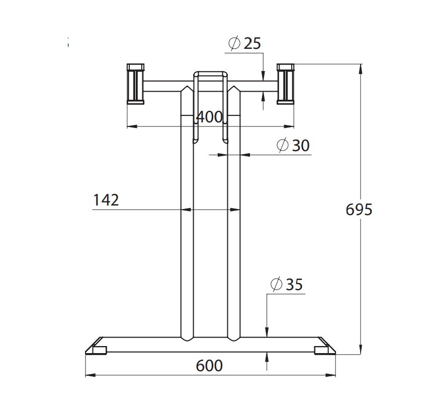 - Základna z leštěné kulaté trubky Ø 35 mm, tloušťka stěny 1,5 mm, dle normy UNI EN 10305-3