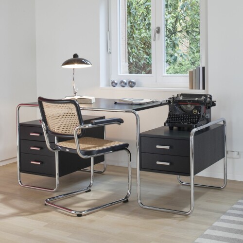 Jednací konferenční židle je promyšlená a univerzální forma sezení. Základem je estetická kombinace kovu, ohýbaného dřeva, výpletu v přírodním materiálu popřípadě v černé síťovině nebo v potahové látce či kůži. Přírodním materiálem je rákosový výplet s podkladní síťovinou pro zpevnění sedáku - typ židle S 32 V, židle s područkami má označení S 64 V. Rákosový výplet je historicky používaný materiál a je velmi elegantní a nadčasový. Zpevněním sedáku bílou podkladní syntetickou síťovinou se prodloužila životnost rákosu, doporučuje se i vlhčení, aby rákos nevyschnul a nepopraskal. V případě židle v syntetické černé síťovině se jedná o typ S 32 N. Varianta S 32 PV má čalouněný sedák a čalouněný opěrák. Židle jsou pohodlné, designově perfektní a jsou vhodné do konferenčních místností, restaurace, jídelny, chodby. Jedná se o design Marcela Breuera, kam je postavíte, tam zdobí.
