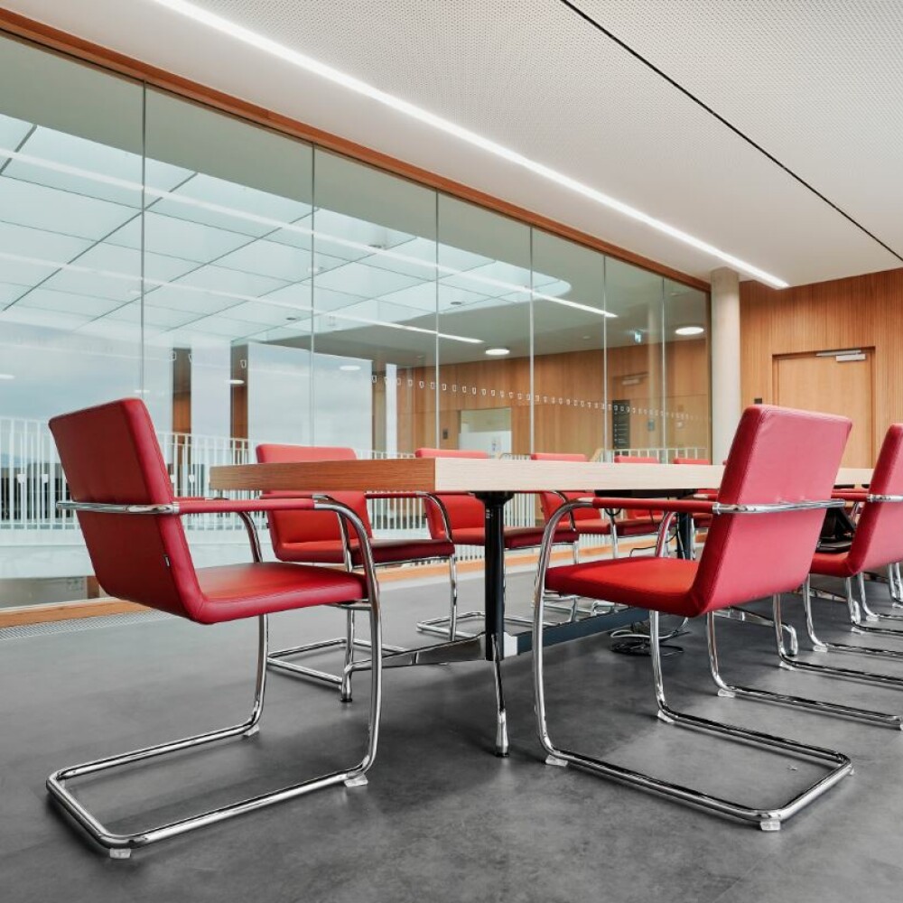 Jednací konferenční židle S 60 V THONET zaujme svým elegantně řešeným sedákem a opěrákem. Jedná se o nízkou verzi opěráku. Sedák a opěrák je celočalouněný, a je spojený s kostrou skrz područky, které jsou pokryty měkkým plastovým materiálem, aby dotek byl příjemný a nestudil. Průměr trubky je minimalizován, takže konferenční židle vypadá velmi subtilně, jemně a elegantně. Židle je možné zvolit ve stohovatelné nebo nestohovatelné verzi, pérová konstrukce má chromovou úpravu. Čalounění je k výběru z mnoha variant typů a barev látek včetně kůže. Židle se hodí jako konferenční, do přednáškových sálů, recepcí, uvítacích hal a dalších veřejných prostor. Nicméně židle S 60 V bude ozdobou i vašeho domu či bytu.