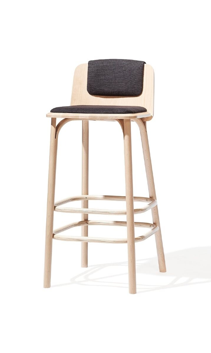 Čtyřnohá čalouněná barová židle Split vyniká kvalitním ručním zpracovnáním dřeva formou ohýbání. Ručně ohýbané prvky se nachází ve spodní části židle a vytváří tak komfortní podpěru pro nohy. K dispozici jsou dvě varianty výšek, které nabízí využití v restauraci či v domácnosti. Panel sedáku a opěráku je čalouněný v látce, kožence nebo kůži.