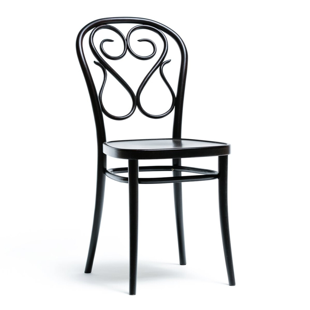 Dřevěná židle se zajímavým opěrákem, který zaujme na první pohled. Tato židle se skvěle hodí do vinárny, hotelů, restaurace. Jedná se o precizní a dokonalé zpracování. Židle je vyrobena z ohýbaného masivního bukového dřeva, sedák je tvořen překližkou.