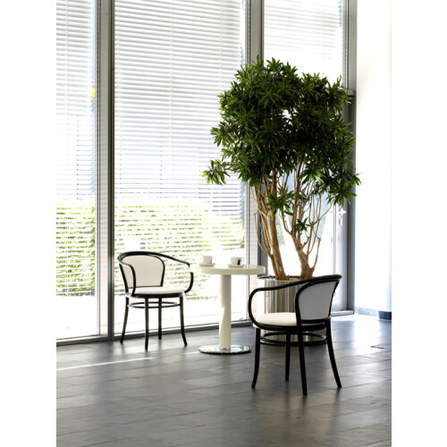 Židlové křeslo s plnou zádovou opěrkou je vyrobené z ohýbaného dřeva a sedák i opěrák je čalouněný látkou, koženkou nebo kůží. Bukové dřevo je mořeno do zvoleného odstínu. Polokřeslo je vhodné do soukromých interiérů, ale i veřejných prostor např. restaurací, kaváren, hotelů.