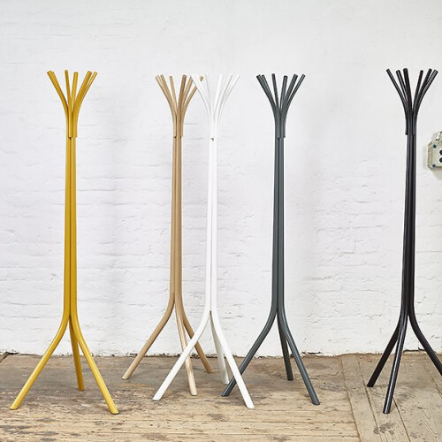 Univerzální věšák s jasně definovanými liniemi hodící se do každého interiéru byl inspirován tradiční technologií ručního ohýbání dřeva. Tři bukové kulatiny tvoří na jedné straně stabilní nohy, na opačné jsou doplněny dalšími třemi úzkými hranolky a nabízí tak dostatečný prostor pro pověšení kabátů.