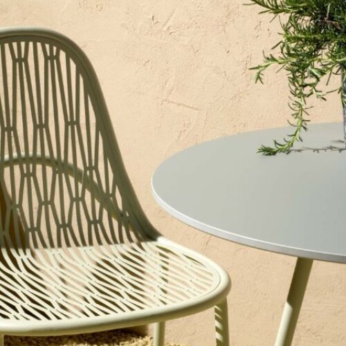 Zahradní židle MALVASIA je unikátním spojením odolného kovu a jemného designu. Díky elegantnímu kovovému vzoru vytváří tato venkovní židlička pozoruhodnou hru světla a stínů. Opěradlo je vyrobeno z jednoho kusu perforovaného kusu, který je téměř neviditelne spojen s trubkovým rámem. Židle MALVASIA oživí každý venkovní prostor, od kavárenských zahrádek po terasu u rodinného domu. Je však vhodná i pro použití v interiéru. Série MALVASIA nabízí barevné provedení v jemných zemitých tónech.