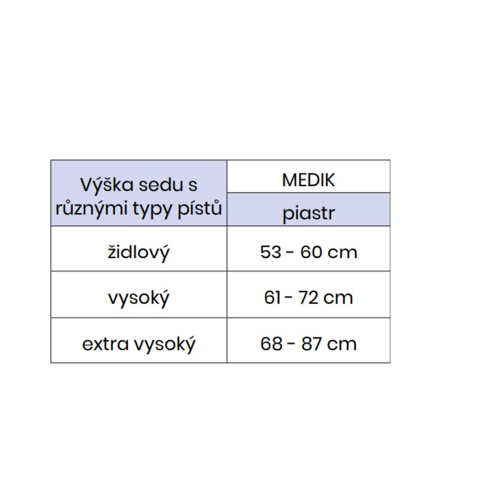 MEDIK je otočná laboratorní židle určená do zdravotnického prostředí, sedák i opěrák jsou čalouněné potahovou látkou nebo koženkou, čí kůží. Sedák a opěrák židle je otočný nezávisle na sobě. Opěrka je výškově nastavitelná a otočná o 360°. Sedák je také výškově stavitelný, k nastavení výšky sedáku slouží kruh pod sedákem, který je ze všech stran dobře přístupný a ovladatelný. Za příplatek lze židli objednat s podpěrným kruhem pro nohy a vysokým plynovým pístem, tato varianta je vhodná k vyšším pracovním stolům. Pracovní zdravotnická židle je ideální do ordinací, laboratoří a různých zdravotnických zařízení.