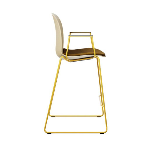 Barová židle NOOR 6090 s plastovým korpusem,čalouněným sedákem a kovovou konstrukcí je vhodná ke všem typům barového sezení, a to jak pro bary či restaurace, tak i pro domácí barové posezení. Vysoký komfort zaručuje propracovaná ergonomie v minimalistickém designu. Série NOOR zaručuje pohodlné sezení v nadčasovém provedení s bohatým výběrem barev plastového korpusu, čalounění i kovové konstrukce. Ližinová kostra je doplněna o plastové či filcové kluzáky podle typu podlahy. Velkou výhodou je stohovatelnost, a to až 5 ks tohoto modelu. Za příplatek lze barovou židli doplnit područkami, které jsou vždy ve zvolené barvě kostry.