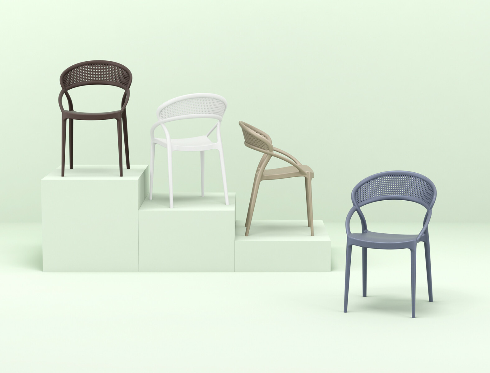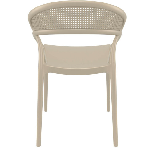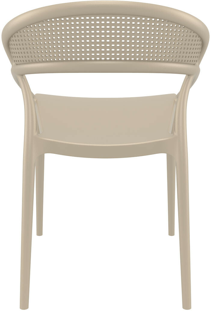 Pohodlná plastová židle SUNSET v barvě taupe (hnědo-šedá), se vyrábí pomocí nejmodernější technologie - tvarováním vzduchem. Diky svému provedení je vhodná i do venkovního prostředí jako jsou zahrádky, posezení atd. Židle je stohovatelná, odolná a splňuje normy CATAS - ideální židle pro náročné veřejné prostory.